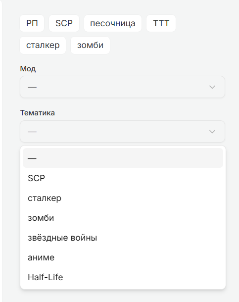 Было изначально решено поделить сервера по моду и тематике, насколько это разумно для именно серверов GM? И все ли возможные варианты добавлены? Для меня лично это непрофильная игра, поэтому и спрашиваю у сообщества сервер-держателей.
