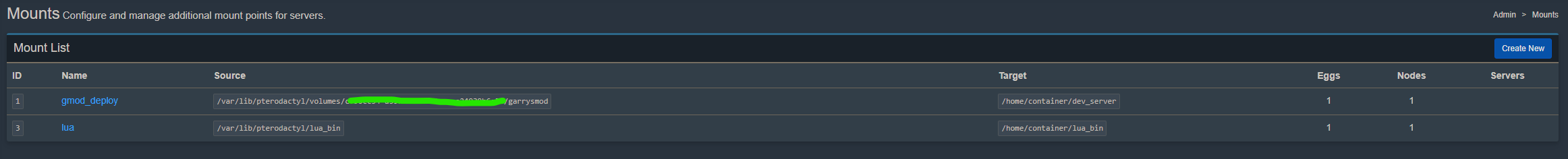 Теперь переходим в админ панель птеродактиля, раздел mounts и создаём 2 новых маунта