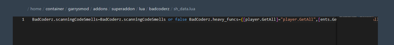 Что получается в итоге: скорость загрузки сервера за считанные секунды (особенно заметно как в моём случае, если у вас “толстый” сервер типа SWRP) а так же минификация кода в 1 строку и небольшим изменениям чтоб сбросить вес луа файлов.
